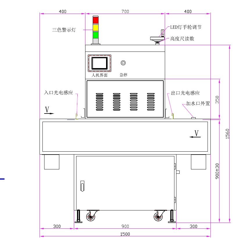 UVLED固化爐采用韓國LG雙組365nm冷光源,搭配水冷散熱系統,確保長時間穩定運行。人機界面觸摸屏控制操作便捷,輸送帶寬度可調(300-350mm),雙層通道設計支持雙