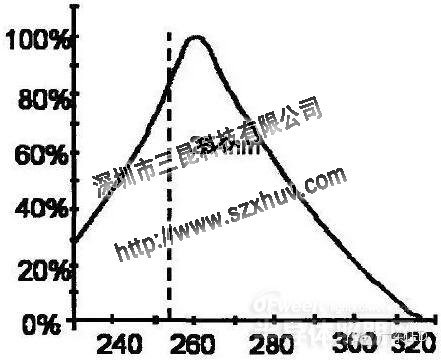 高壓汞燈發光譜線主要是254nm和185nm兩種,因此當UVLED燈的波長為254nm時,核酸具有最大的UV吸收能力,即殺菌效果最佳。